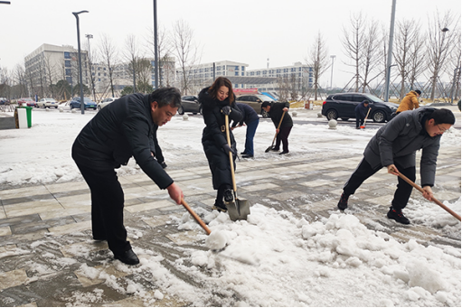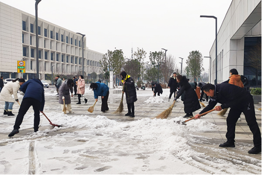 本网讯 近日,受寒潮影响,荆州市大范围雨雪冰冻天气持续。开学在即,为避免因路面结冰给师生返校带来安全隐患,2月26日,公司组织在校教职员工积极开展铲雪除冰行动,为校园筑牢温暖防线。上午8点30分,公司经理李兴祥、党委书记颜建洲等院领导带领教职工来到图书馆门口,积极投入到进出口要道的铲雪除冰行动中。大家挥动铁锹、笤帚等劳动工具,以饱满的热情和十足的干劲战严寒、斗冰雪,为即将返校的员工开辟出一条安全的“暖心路”,确保新学期井然有序开学,迎接着每一名员工平安归来。(图文由党委宣传部提供)