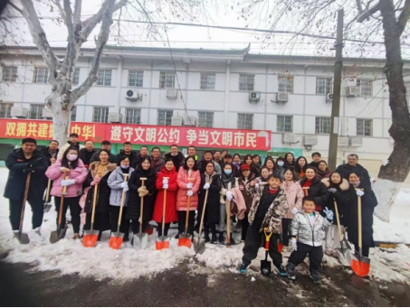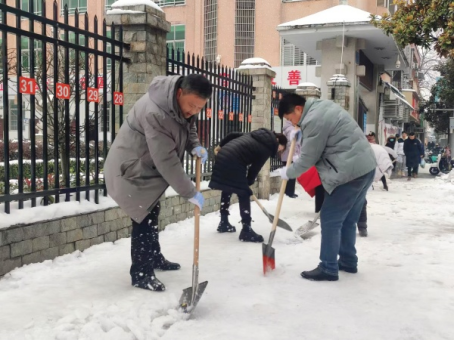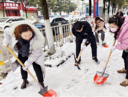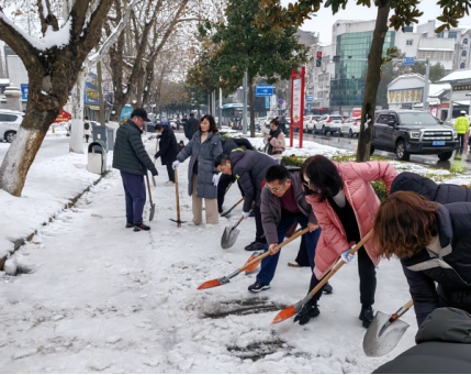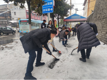 本网讯 近日,市区出现持续低温雨雪天气,道路积雪成冰。为尽快消除大雪给居民出行造成的不利影响,2月7日上午,公司组织党员干部参加义务清理城区路面积雪活动。公司领导颜建洲、李则俊、曹骥、郭明虎带领党员干部清晨到达郢都路27号路段,大家齐心协力,配合默契,挥动铁锹和石镐,经过一个上午紧张而有序的奋战,终于将包保路段所有积雪清理干净,为居民的安全出行提供了有力保障。