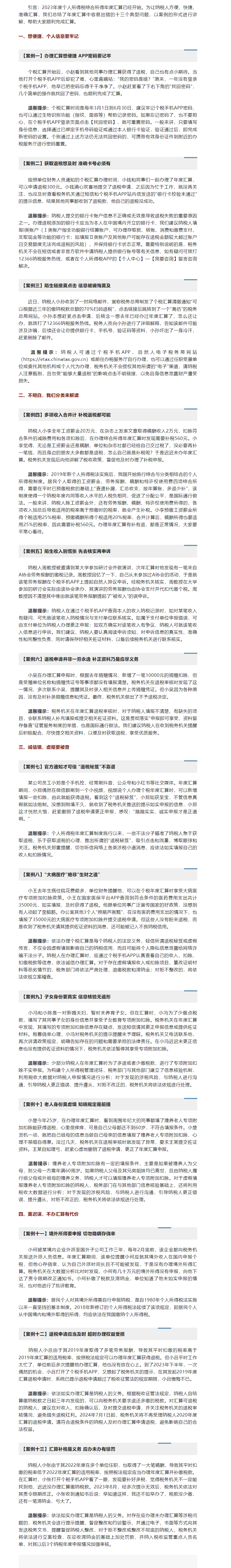 个人所得税汇算服务与风险提示十三案例