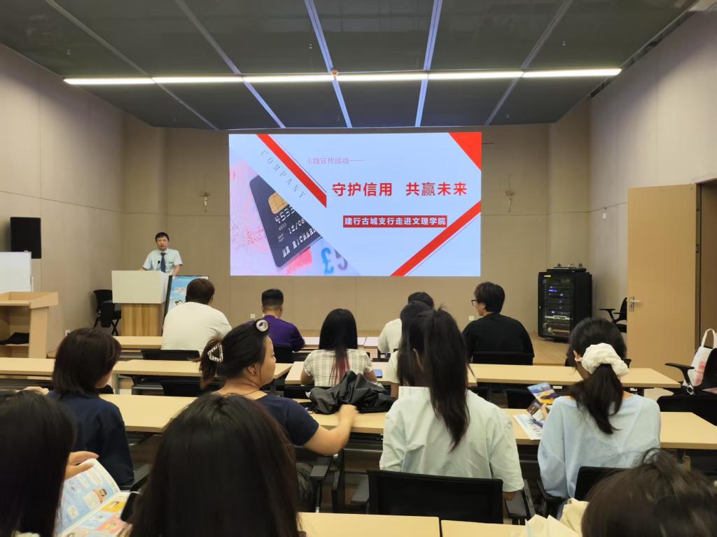 为进一步提升本校员工的信用意识和金融素养,筑牢校园金融安全防线,2025年6月12日,计划财务处联合中国建设银行古城支行,在图书馆103报告厅成功举办了主题为“守护信用·共赢未来”的专题公益讲座。