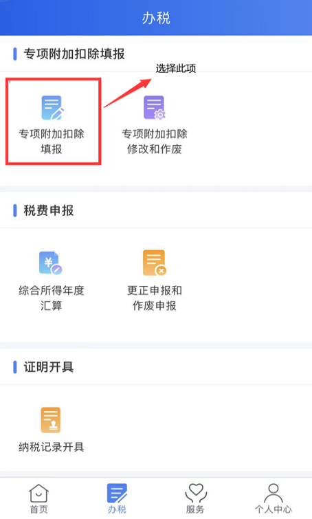 2.选择“专项附加扣除填报”