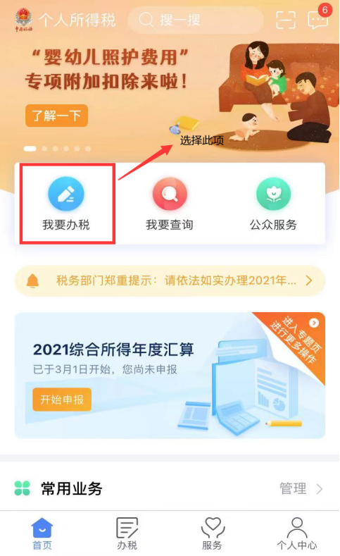 1.打开个人所得税APP,实名制登录后选择“我要办税”