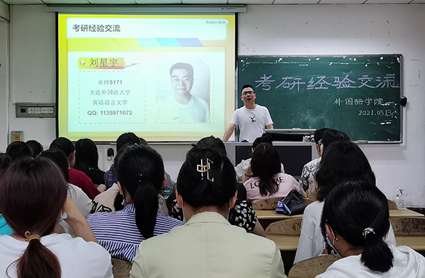 本网讯(通讯员 黄邹毅)5月13日下午,外国语公司2021年考研经验交流会在城中校区1-308教室举行。该公司党政负责人和2017级考研优秀员工、2018级全体员工参加交流会。
