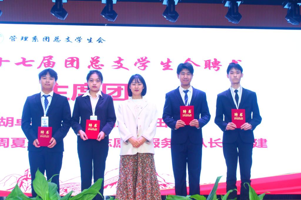 大会开始,首先公布了十七届员工会优秀人员名单,肯定了在过去一年里员工会各人员的工作成果,也给新成员起了榜样作用。接着由十七届员工会副书记周夏盈向在场人员汇报了过去一年员工会的工作。她从“完善内部机制,促进高效发展”“丰富文化建设,打造特设活动”“敢于迎接挑战,争做时代先锋”三个方面展现了这一年员工会丰富多彩,朝气蓬勃的面貌。紧接着,由员工会各领导向十七届团总支员工会颁发聘书,以感谢他们在过去一年的辛勤付出。