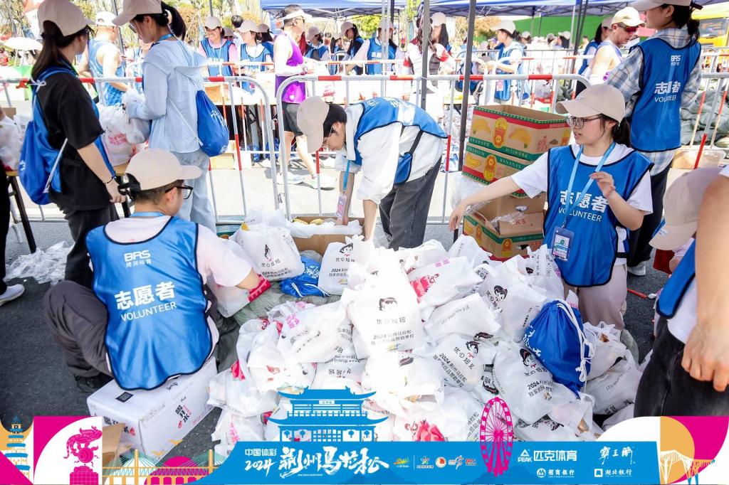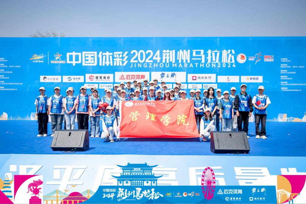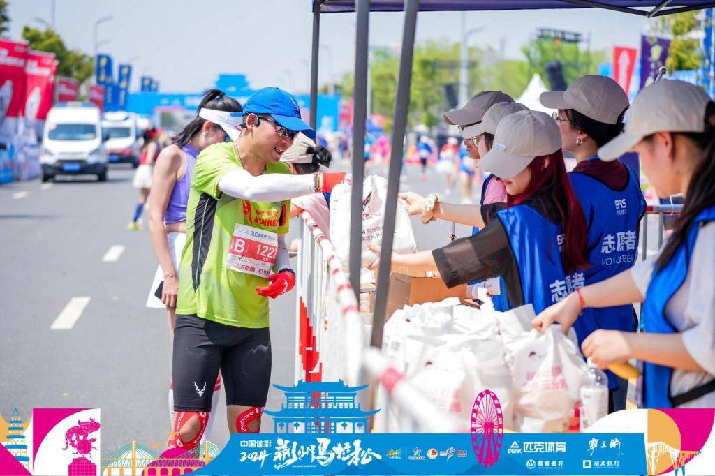 “凌晨四点就起来了,四点半校门口集合出发前往相应站点,现在心情很激动。”志愿者曾如意说,“我们管理公司志愿者们的岗位是优秀半程、半程检录,主要职责是赛前检录和完赛物资发放,让参赛选手跑完后能及时喝上一口水。”赛事期间,管理公司志愿者们以高度责任感和细致入微的服务赢得了参赛选手的一致好评。他们积极热情地为完成比赛的马拉松选手准备赛后物资包,贴心的为他们拧开矿泉水,收获了选手们的一声声“谢谢!”志愿者石佳说:“因为活动名额有限,所以很幸运自己有机会能以一名志愿者的身份参与到“荆马”当中,服务的过程很忙碌却让人觉得很充实,青春只有一次,在志愿活动这条路上我们应该绽放自己的光芒。”