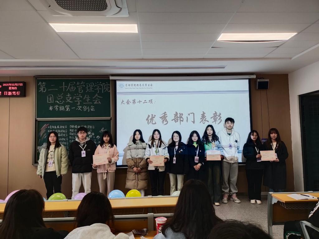 会议最后,对上学期表现突出的优秀部门、优秀部长及优秀干事进行了表彰,激励全体成员以先进为榜样,在新学期的工作中再接再厉、不断进取。