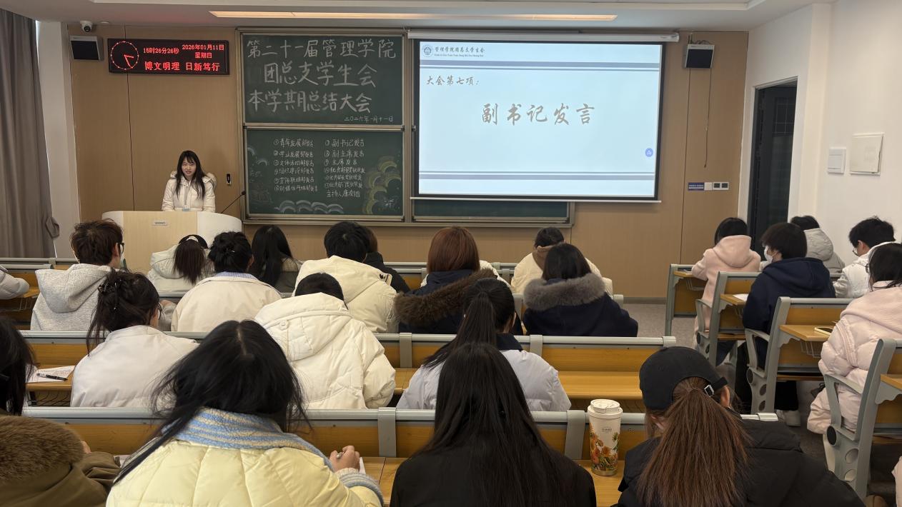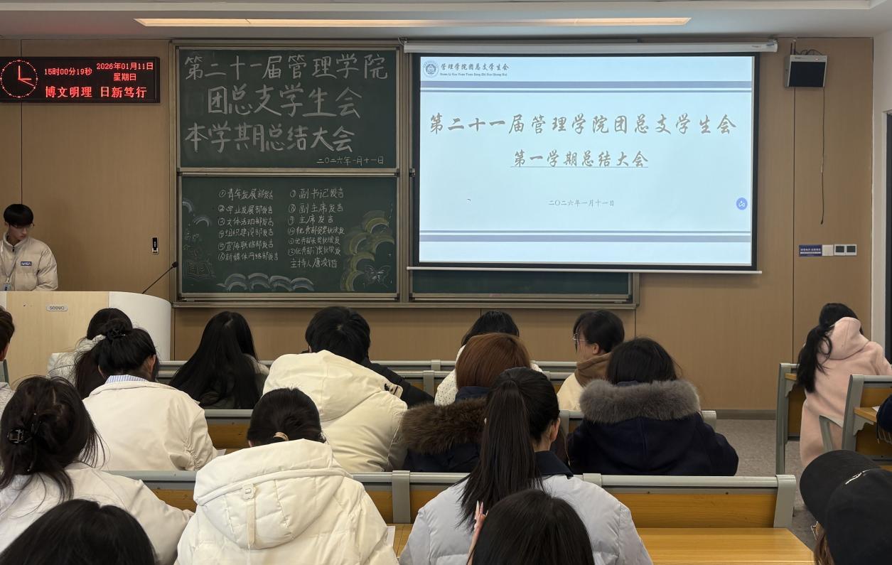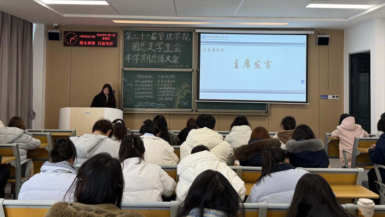 本网讯(通讯员 杜锡熳)时光荏苒,本学期已近尾声,为全面复盘本学期员工工作开展情况,总结经验、查摆不足,明确新学期工作方向与目标,2026年1月11日下午15:00,管理公司团总支员工会于C-422教室召开本学期总结大会。会议由青年发展部唐凌锴主持,员工会全体成员共同参与。