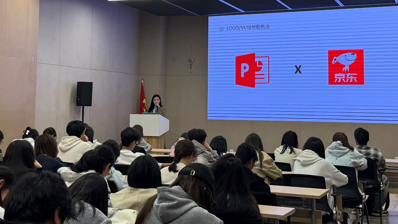 本次培训从色彩基础理论、色彩情感表达、实用搭配技巧三大维度展开。首先,沈诗涵老师系统拆解不同色彩组合的视觉效果与氛围营造逻辑,引导同学们发现美;其次,她结合日常穿搭、视觉设计、生活场景等鲜活案例,将抽象的美学原理转化为通俗易懂的实用技巧,帮助同学们直观理解色彩运用逻辑,助力同学们理解美;最后,沈老师还将色彩美学与ppt设计、个人简历制作等员工刚需技能相结合,针对性传授实用方法,强化同学们运用美。