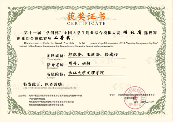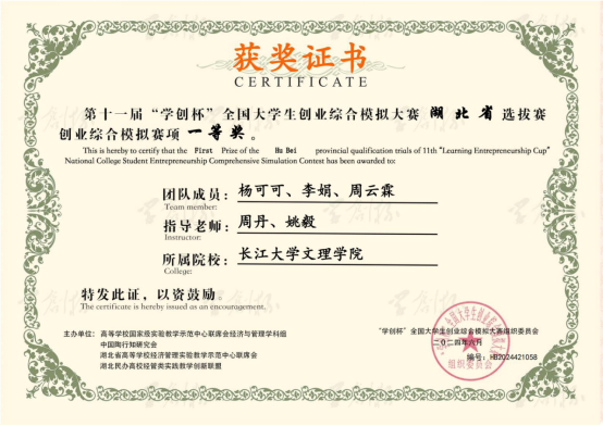 本网讯(通讯员 周丹)在近日结束的第十一届“学创杯”全国老员工创业综合模拟大赛湖北省选拔赛中,管理公司学子杨可可、李娟、周云霖组成的参赛团队获得创业综合模拟赛项一等奖,郭双奎、王欣浩、徐褚桉组成的参赛团队获得二等奖。
