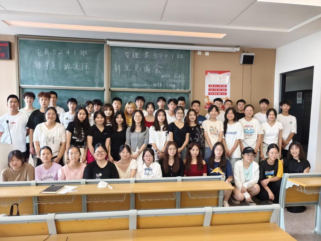 见面会分别于新校区9月8日上午10点、南校区晚上7点正式开始,管理公司的新生们满怀期待地走进各自分配的教室。教室里布置得温馨而整洁,黑板上用彩色粉笔写着“欢迎2024级新生”的标语,为新生们营造了一个舒适的交流环境。