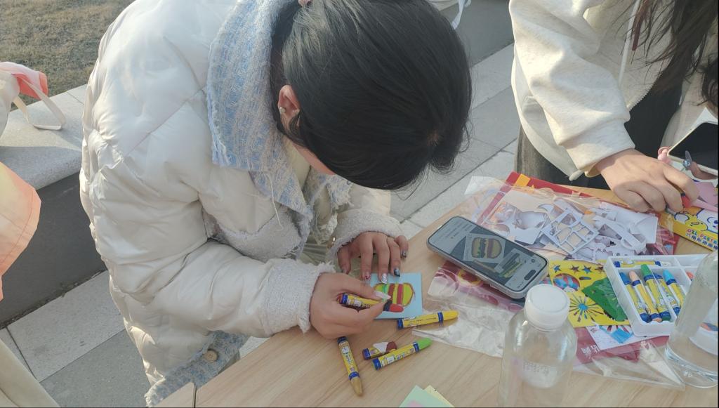 活动现场,同学们积极参与,热情高涨。在拼图游戏中,大家专注地拼着印有雷锋形象和中国共产党成立等主题的拼图,仿佛在与历史对话。一旁的问答环节也吸引了众多同学驻足,抽取问题纸条回答关于雷锋事迹和党史的问题,答对即可获得哪吒钥匙扣、雷锋贴纸等精美小奖品。