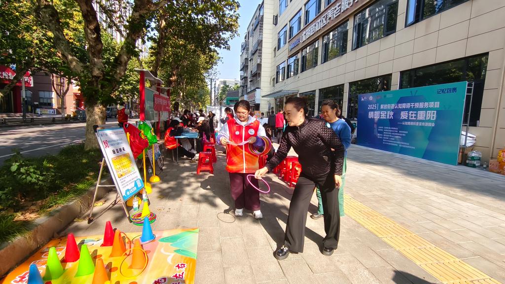 游园会现场设置了科普展示区、互动体验区、咨询义诊区三个区域,内容丰富且贴近老年群体需求。科普展示区通过图文展板、案例讲解等形式,生动普及认知障碍的早期信号、预防方法及科学照护知识;互动体验区人气爆棚,“记忆投篮”“祝福留声”等趣味游戏,让老年朋友们在轻松玩乐中锻炼脑力,同时直观感受认知功能训练的重要性;咨询义诊区里,专业人员老年群体测血压,检查眼睛,直观地了解老年人身心健康。