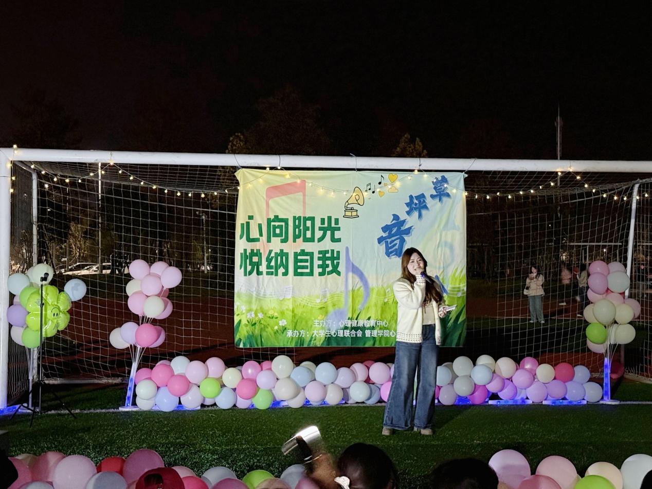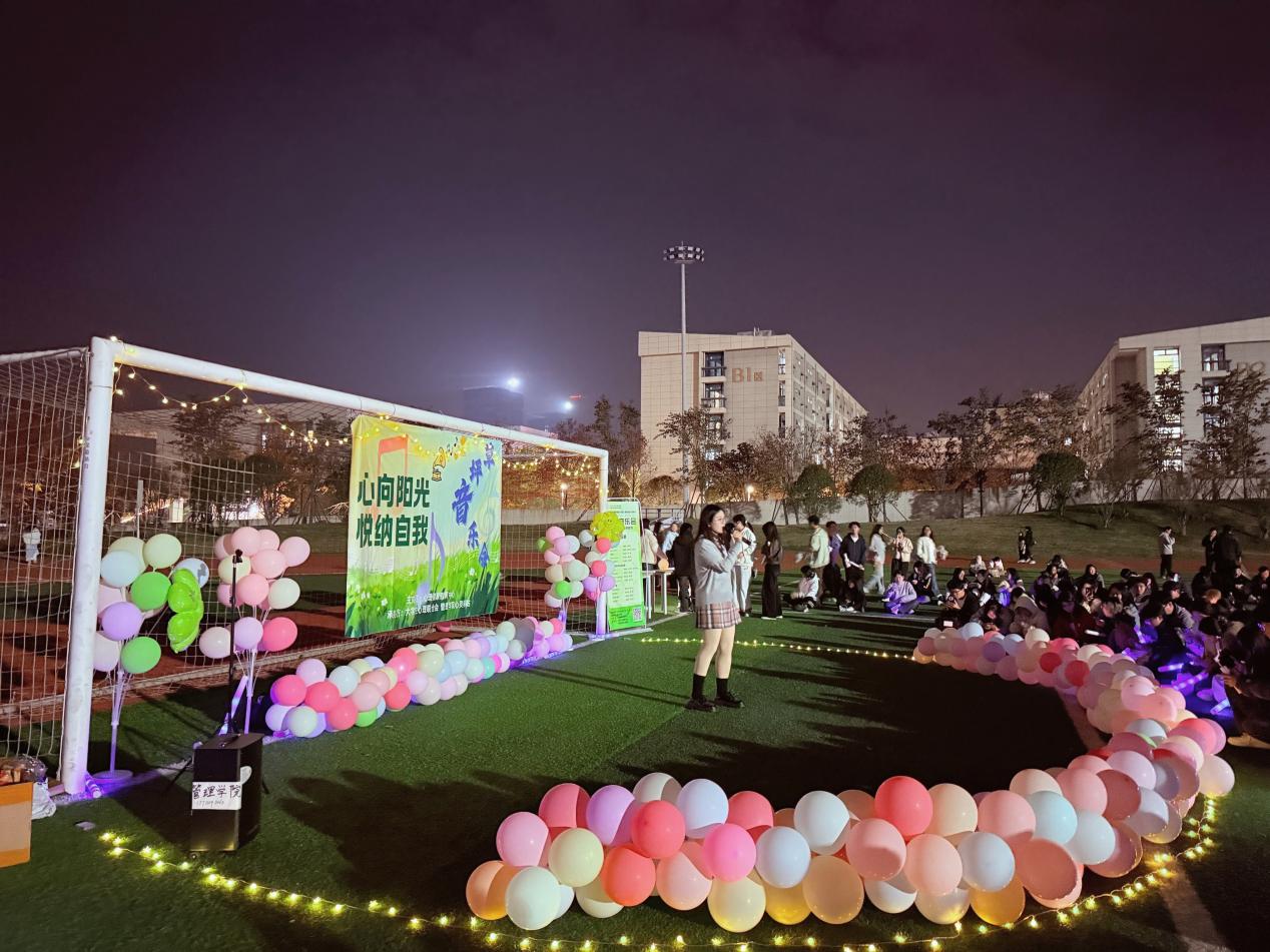 本网讯(通讯员 张友超)星光璀璨,晚风微拂,一场以“心向阳光·悦纳自我”为主题的草坪音乐会于11月14日18:00-21:00在操场南面活力开演。本次活动由心理健康教育中心主办,老员工心理联合会、管理公司心灵驿站联合承办,通过音乐与心理互动的创新形式,为师生们打造了一场兼具艺术感染力与心理疗愈力的视听盛宴。