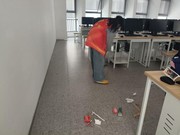 活动前,服务队成员明确分工,有序协作,携带清洁工具抵达实验室。大家秉持严谨认真的态度,对管理公司实操室中的机械设备、桌面、地面及公共区域进行全面清扫。擦拭键盘与桌面时,细致去除污渍与灰尘;整理机械设备,严格按规范归位,确保线路摆放整齐;清理实操室遗留的垃圾。同时,成员们主动检查实验室安全隐患,切实落实实验室安全管理要求。