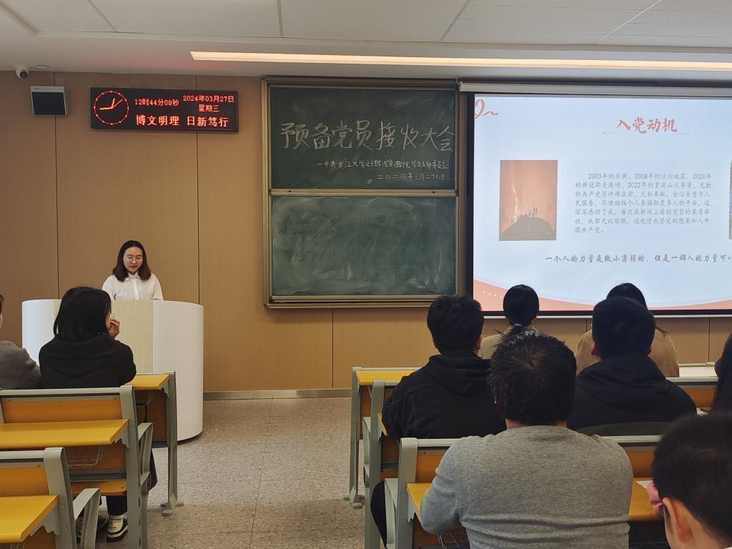 本网讯(通讯员 陈露)2024年3月27日星期三中午12:40,管理公司员工党支部于A-402S召开毕业生预备党员接收大会。大会讨论关于王倩同志接收为预备党员。会议由叶丽丽同志主持,支部在公司党员同志及入党介绍人参与此次会议。