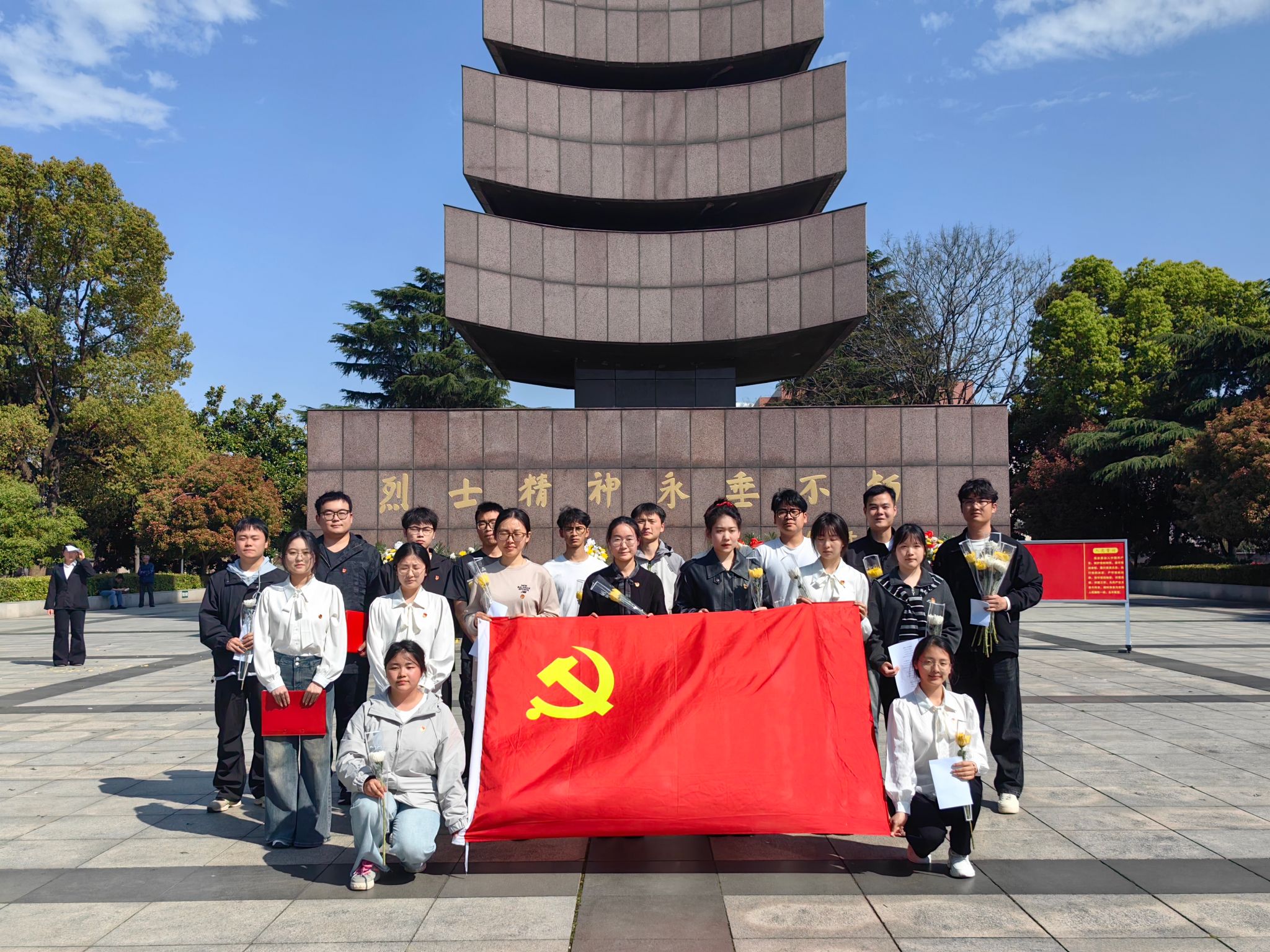 在汪李雨涵同志的带领下,全体党员面对鲜红党旗,高举右拳,于纪念碑前重温入党誓词。誓言铮铮,回荡陵园,彰显了青年党员不忘初心、牢记使命的坚定信念。宣誓完毕后,同志们缓步向前,向烈士纪念碑敬献鲜花,寄托无限的敬仰与追思。