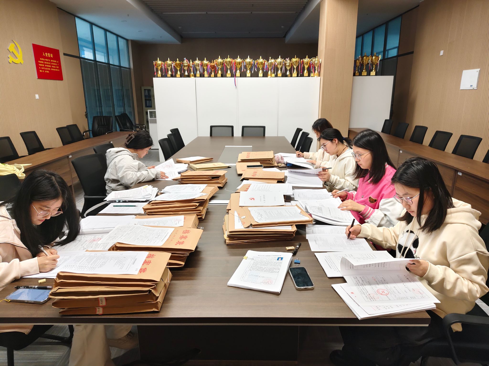 此次交叉检查由管理公司员工党支部组织兼纪检委员王希若、宣传委员万学君以及党员代表何若萱三位同志,与信息与机电工程公司员工党支部组织兼纪检委员吴诗琪、宣传委员赵秋丽、王鑫以及鲁盼四位同志共同参与。双方围绕近三年发展党员工作台账,重点对入党申请、积极分子确定与培养、发展对象考察、预备党员接收与转正等环节的程序合规性和材料完整性进行了逐项核查。