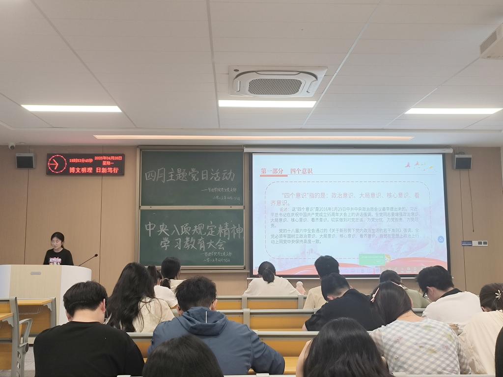本网讯(通讯员李琪)管理公司员工党支部于4月28日晚18:30,在教学楼A402召开四月主题党日活动,管理公司全体党员参加。此次会议的主要内容是“开展深入贯彻中央八项规定精神学习教育”。会议由李琪同志主持。