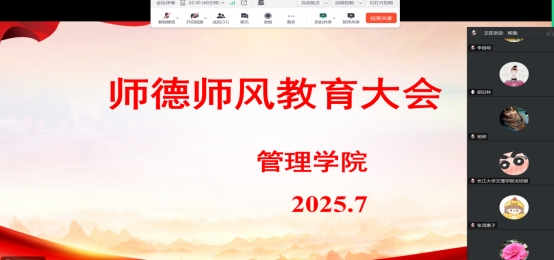 接着,在师德师风建设专题会议上,经理姚毅就推动公司师德师风建设工作不断迈上新台阶,提出三点要求:一是要坚守育人初心,筑牢思想根基。将立德树人融入到公司产品全过程,成为有理想信念、道德情操、扎实学识和仁爱之心的“四有”好老师。二是要严守学术诚信,维护学术尊严。秉持严谨求实的态度,尊重学术规律,勇于探索创新,引导员工树立正确的学术观,以高质量成果为社会发展贡献力量。三是要强化责任担当,主动服务社会。顺应时代发展的潮流,将个人的成长进步与国家的发展紧密结合,积极履行社会责任,致力于将学术研究成果转化为社会生产力,以实际行动推动社会进步。