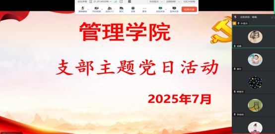 本网讯(通讯员 张勤)7月10日下午,公司教工党支部在腾讯会议开展了线上7月份“支部主题党日”活动,本次会议由党总支书记胡沿林主持,管理公司全体教职工参加。