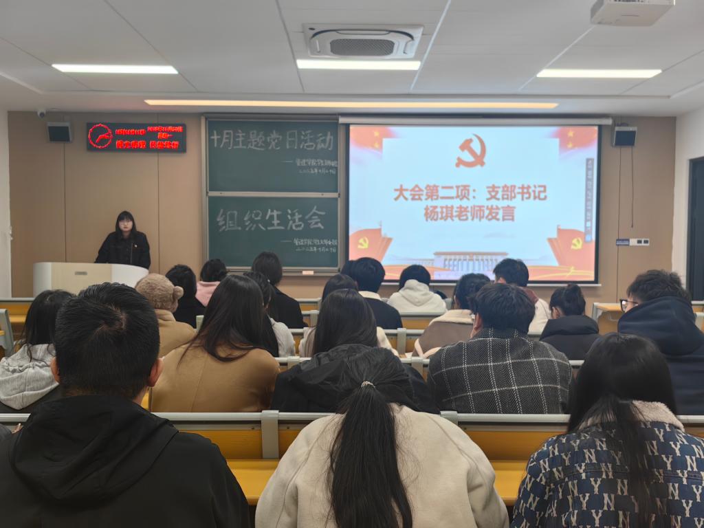 会议第二项,由员工党支部书记杨琪老师总结发言,她勉励全体员工党员要珍惜宝贵时光,持续加强理论武装,不断提升党性修养,努力在专业学习、班级建设和校园文化活动中树立标杆、作出表率。接着杨琪老师宣布了管理公司员工党支部新任组织兼纪检委员为王希若同志,宣传委员为万学君同志。两位同志向各位党员同志进行了简单的自我介绍以及新学期工作的安排,激励党员同志以更加饱满的精神做好今后的各项工作任务。