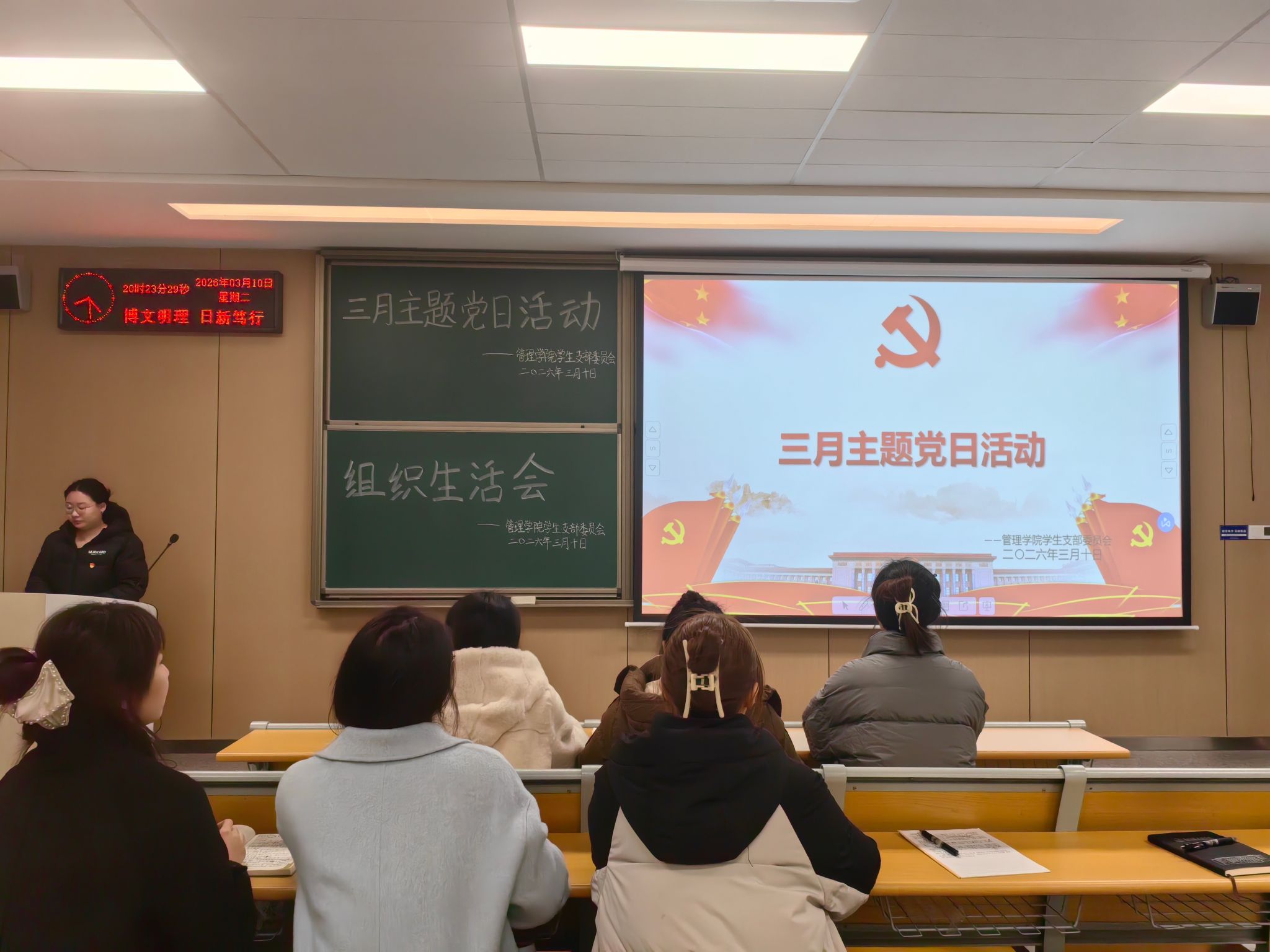 本网讯(通讯员 黄江琴)3月10日,管理公司员工党支部在教学楼A-402召开三月主题党日活动,支部全体党员参加。本次活动以“扎实开展树立和践行正确政绩观学习教育”为主题,旨在引导党员同志深刻领会习近平总书记关于树立和践行正确政绩观的重要论述,深入学习贯彻党中央最新精神,切实将正确政绩观内化于心、外化于行。会议由汪李雨涵同志主持。