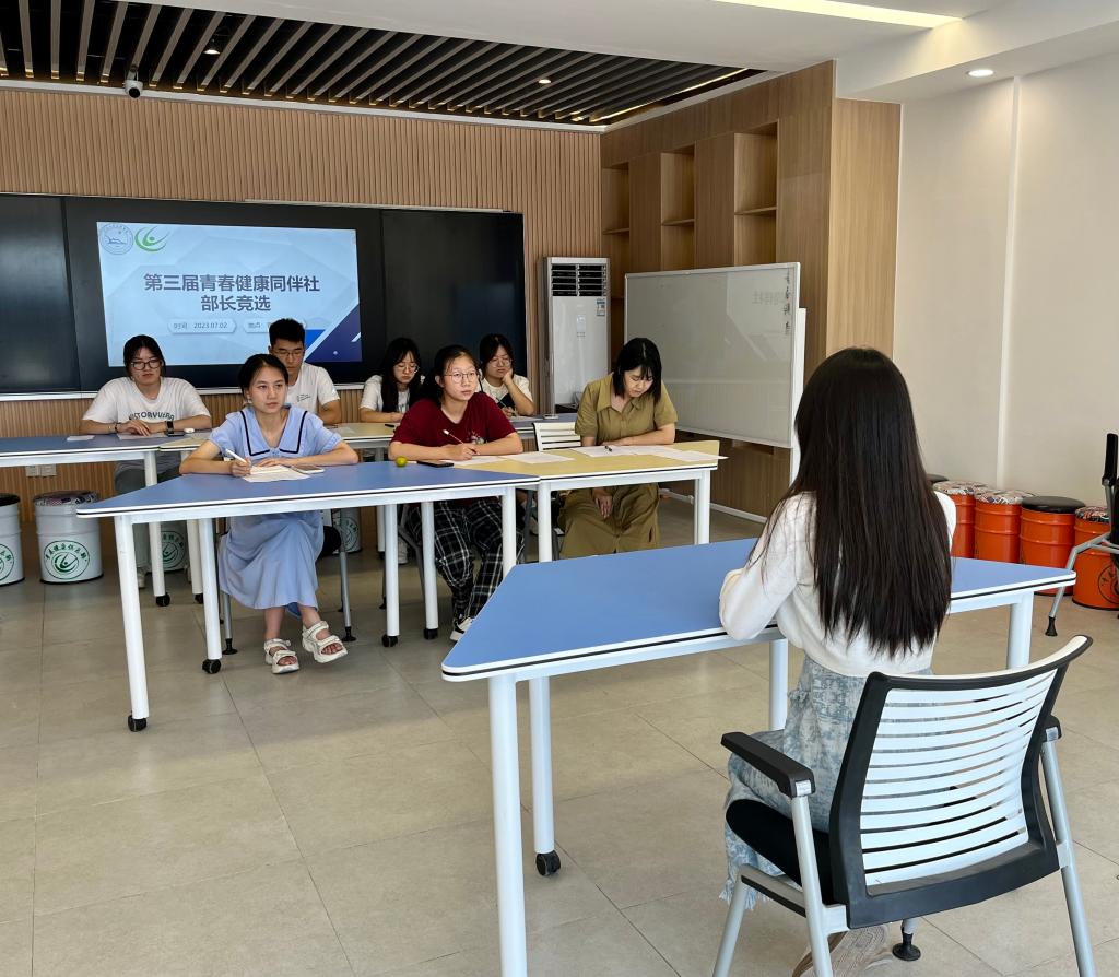 本网讯(通讯员 陈政烨)2023年7月2日,在各部门统一协商及社团成员的精心策划下,青春健康同伴社成功举办了2022-2023学年部长换届大会。