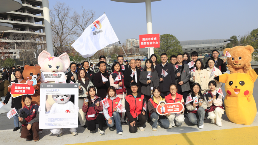 随后在主持人的带领下我们开启了此次的健康走活动,去往荆州市荆州区中央公园,在那我们设计了一系列的特色宣传活动,47名志愿者化身“防艾宣传员”,通过趣味互动、知识科普与温情倡议,传递科学防艾理念,消除对艾滋病患者的歧视。