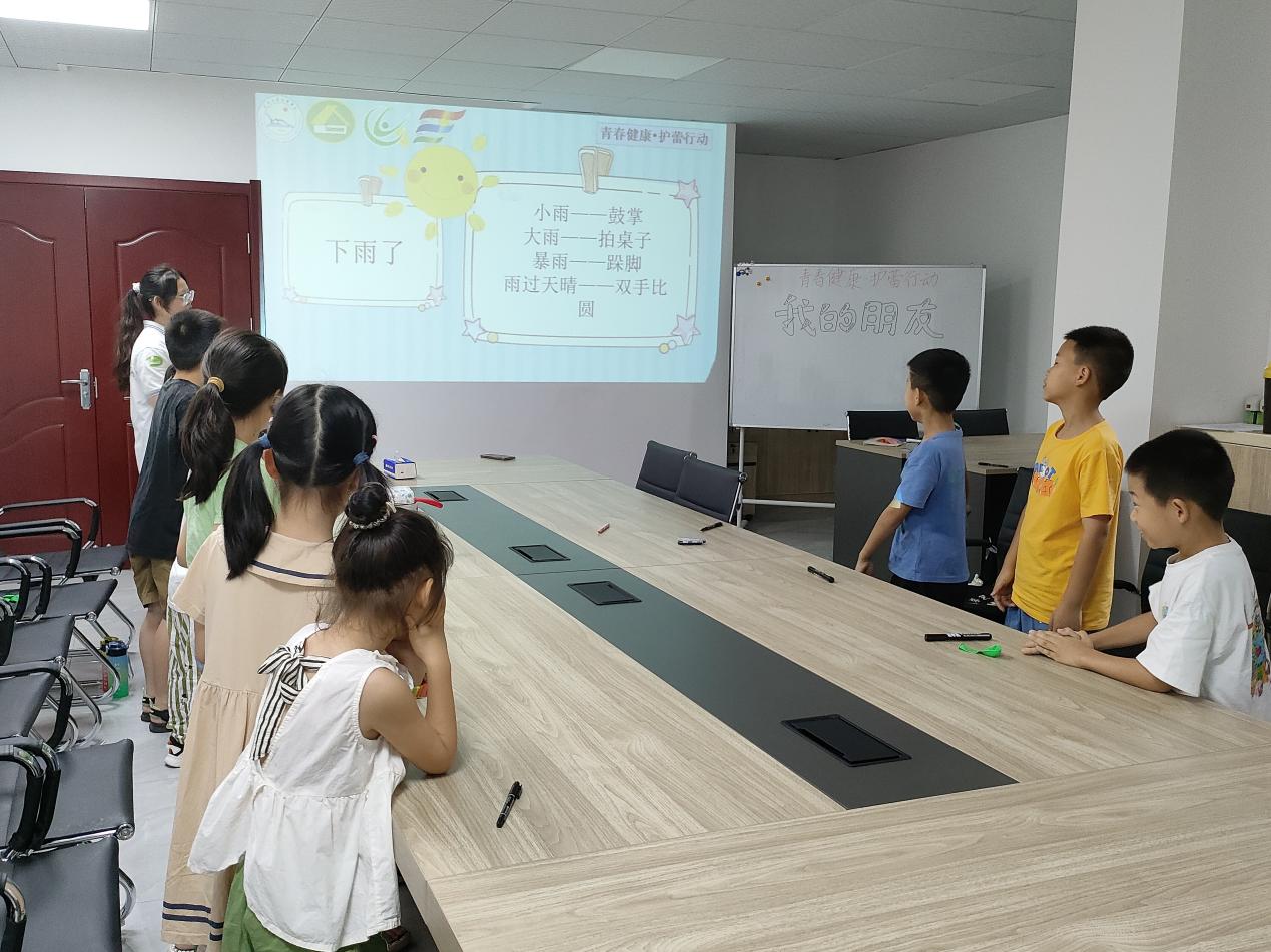 在活动开始前,志愿者们通过“下雨了”的小游戏来提高孩子们参加活动的热情,活跃现场气氛。