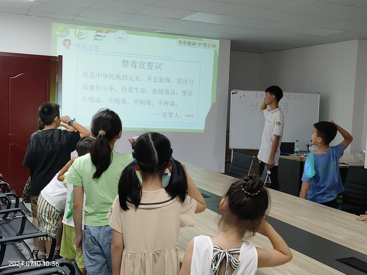 活动最后,志愿者们带领孩子们一起念禁毒宣誓词“我是中华民族的儿女,不忘耻辱,坚决与恶魔作斗争,珍爱生命,拒绝毒品,保证不吸毒,不贩毒,不制毒,不种毒。”
