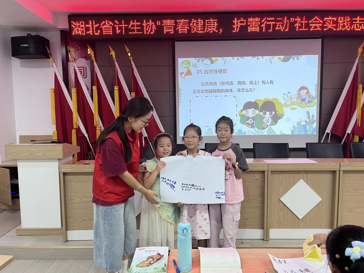 本网讯(通讯员:孙悦)近日,为积极响应湖北省计生协关于开展“青春健康,护蕾行动”暑期志愿服务活动的倡议,省计生协青春健康2026世界杯官网“青铸未来,健筑梦想”项目点志愿者服务队于7月22日至23日前往茶庵寺社区、郢都路社区开展社会实践活动,本次活动紧紧围绕“预防性侵害”“生活中如何禁毒防艾”等内容开展青春健康教育。