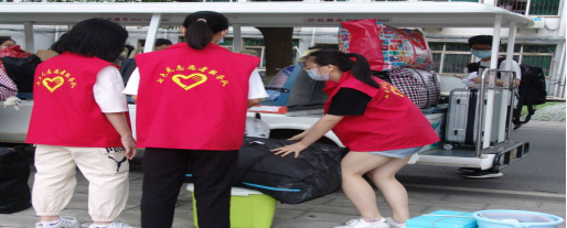 为保证此次迎新工作的顺利开展。我系部老师带领高职部员工会及志愿者服务队分成多个小组进行迎新工作:负责帮助新生接行李的接待组、负责将新生带到报名点流动组、负责帮新生搬行李的搬运组、以及负责引导新生们找到自己的班级和对公司进行介绍的新生报到组。