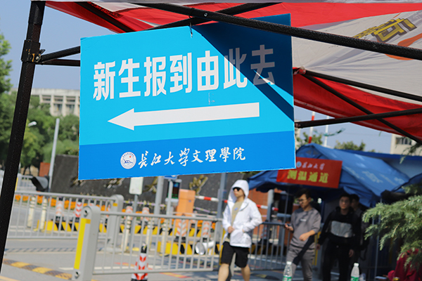 9日下午,鲜艳的迎新留影墙摆放在西校区1号教学楼下。“今日文理学子,明日国家栋梁。”“文理有你,甚是欢喜;扬帆启航,再创辉煌。”醒目的横幅有序安装在迎新现场。迎新报道处,遮阳篷一字排开,各种指示牌有序张贴,车辆引导、道路指引标识科学摆放,摆渡车在指定地点随时待命。