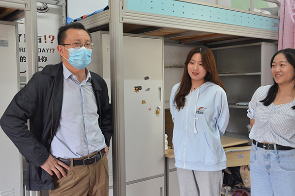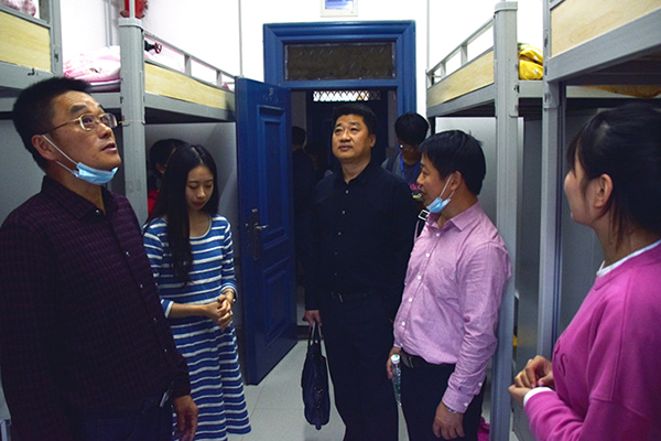 下午4时,迎新工作接近尾声,经理王文凯,党委书记朱继平,副经理尹家经、康建虎,党委副书记孙细望率相关职能部门及高职部主要负责人,分别来到西校区专科新生寝室看望新同学。