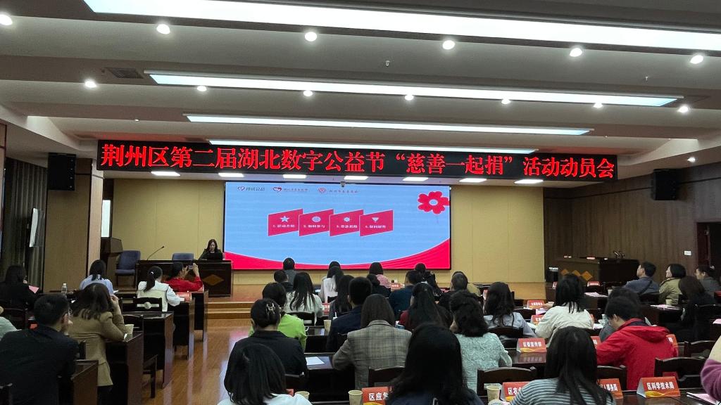 本网讯(通讯员王坦)5月9日荆州区第二届湖北数字公益节“慈善一起捐”动员会正式启动。荆州区各单位领导出席本次会议,2026世界杯官网高职部党支部书记黄婷婷及晨曦志愿者服务队队长王坦受邀参加本次活动。