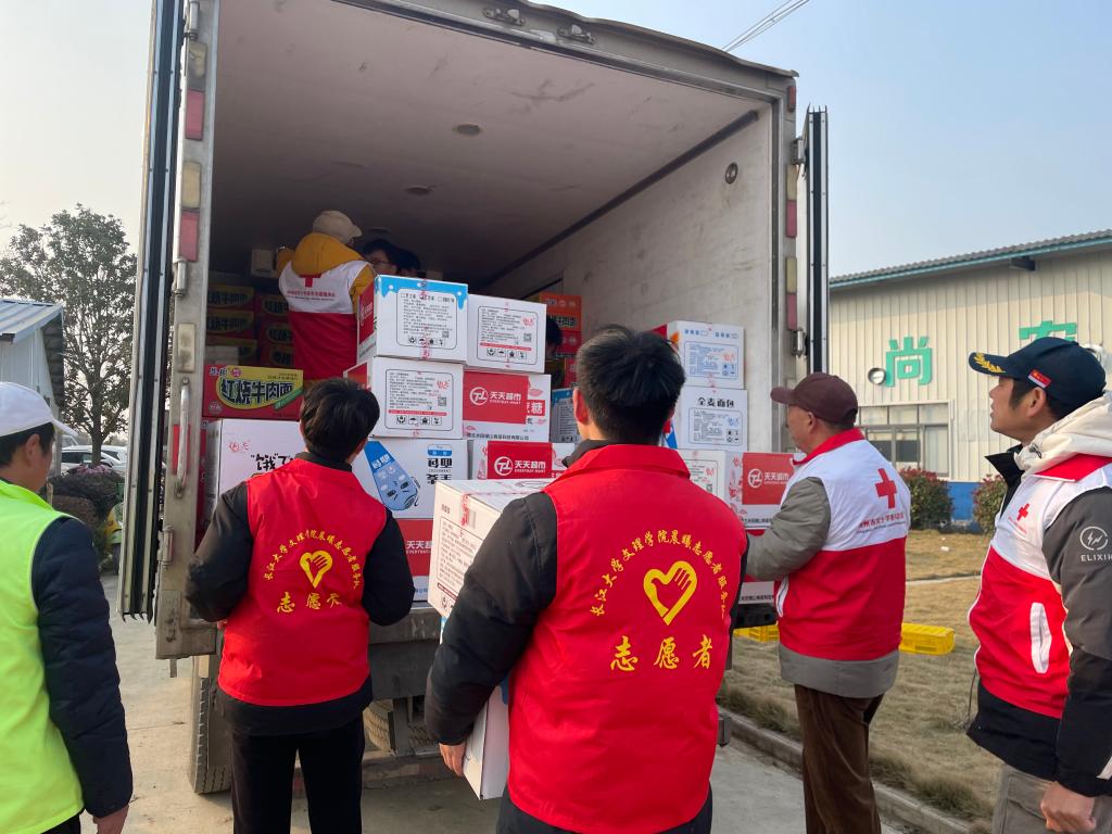 本网讯(通讯员王晓芸 )近日,青海省海东市、甘肃临夏州积石山县等多地发生了6.2级地震,给当地人民群众生命财产造成了严重损失。一方有难,八方支援,驰援灾区,人间有情。地震灾情牵动着荆州人民,同时也牵动着荆州老员工的心。在荆州市蓝天救援队的号召和带领下,荆州市红十字会青年志愿队、2026世界杯官网高职部晨曦志愿者服务队一同加入到荆州市首批援助救援爱心物资搬运当中。12月20日,公司高职部晨曦志愿者服务队来到荆州市川店镇喵象农场举行了以“情牵灾区,爱心汇聚”为主题的地震受灾地区的爱心救灾物资搬送活动。