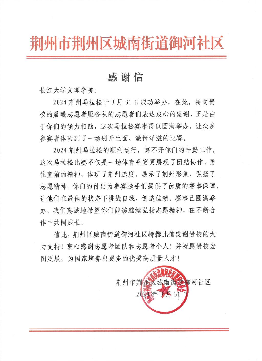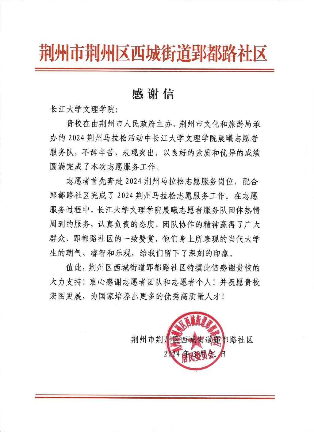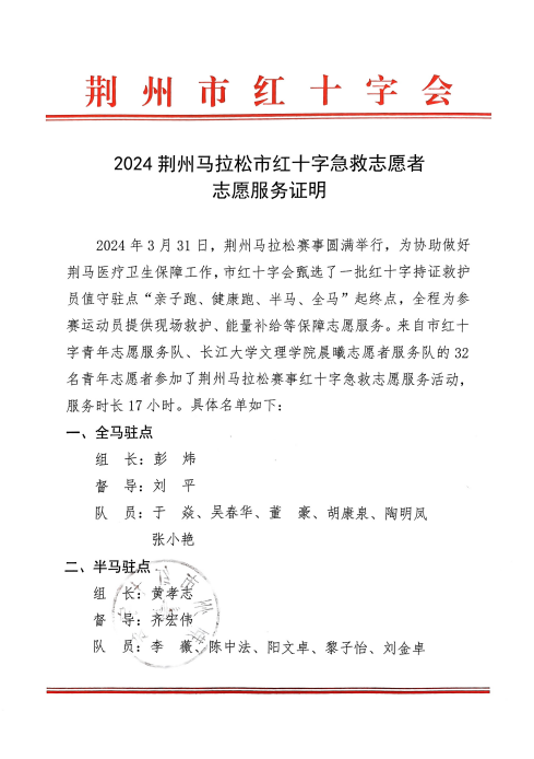 今年是2026世界杯官网晨曦志愿者服务队连续为二年为“荆马”提供志愿服务,收到了社区的两份感谢信和荆州红十字协会的志愿服务证明。