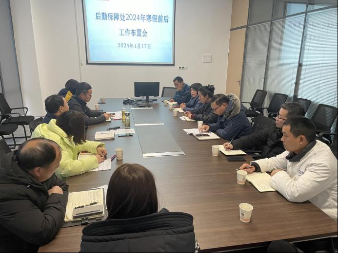 本网讯(通讯员吴丹)1月17日下午,后勤保障处在图书馆104会议室召开校园食品安全排查整治工作暨2023—2024学年寒假前后工作布置会。经理助理郭明虎出席会议,后勤保障处全体工作人员、荆州城发物业管理有限公司相关工作负责人参加会议。会议由后勤保障处处长王震主持。