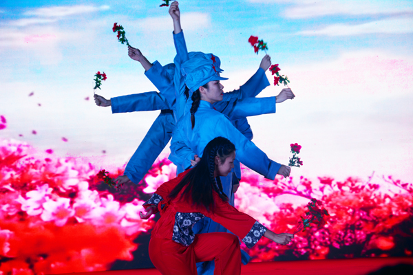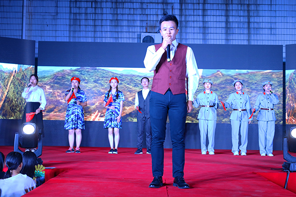 晚会在乐队表演《再见杰克》的激扬乐曲中拉开帷幕,诗朗诵、歌舞、乐器等各类节目依次上演,美轮美奂。歌曲联唱《歌声飘过七十年》表达了2019年学子对祖国美好的祝愿,民族舞《映山红》将大家带到了抗战的烽火战场,让大家深深感触到幸福生活来之不易,诗歌朗诵《少年中国说》体现了青年学子不负韶华、用奋斗报效祖国的志气,深情演绎歌舞《今天是你的生日 我的中国》向祖国70华诞献礼。晚会在全体院领导与56名老师合唱歌曲《国家》中圆满落幕,嘹亮的歌声在空中久久回荡,激起全体师生的爱国热情。