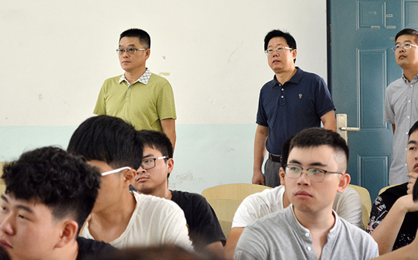王文凯(二排中)、康建虎(二排右一)检查教学情况并随堂听课