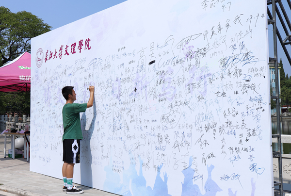 在新生签名墙上留名