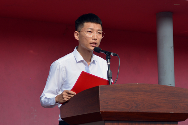 人文与传媒系陈庭威代表全体在校员工发言。他与大家分享自己的人生格言:对未来真正的慷慨,是把一切献给现在。他说,大学有更多自主选择的自由,大家要学会平衡好自由与自律的关系,热情对待学习、工作和生活。
