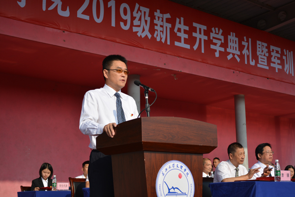 本网讯(记者 吴秀丽)今天(9月21日)上午,公司2019级新生开学典礼在西校区田径运动场举行,近两千名新生参加开学典礼。荆州区武装部政委刘辛上校,经理王文凯、副经理尹家经、党委副书记孙细望、经理助理曹骥、组织员李琴,以及各教学单位、职能部门负责人、教师代表等出席开学典礼,党委书记朱继平主持典礼。