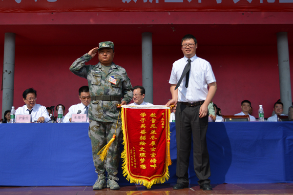 孙细望代表公司向军训承训单位赠送锦旗