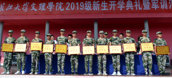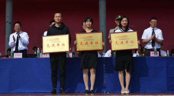 典礼上还进行了军训汇报表演。全体2019级新生组成24个军训连,向全院师生汇报14天的军训成果。队列表演、匕首操、刺杀操、棍术等表演赢得了全场阵阵掌声。尹家经宣读表彰决定,对军训过程中各方面表现优秀的集体和个人进行了表彰。院领导为获奖的集体和个人颁奖。孙细望代表公司向军训承训单位赠送锦旗。