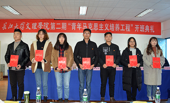 李应军、孙细望等分别为第一期青马班的10名优秀学员颁发证书。员工工作部负责人为本期青马班班主任、经法系辅导员文国霞颁发聘书。
