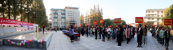 本网讯(员工记者 马玉婷 杨丹丹 见习记者 郑丽君 黄璐璐)11月8日下午,在城中校区校园文化广场,公司第十二届社团文化艺术节启动。党委副书记孙细望出席启动仪式。