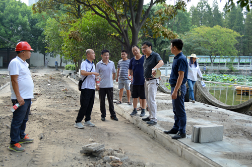梅平、李应军一行检查西校区环境改造工程