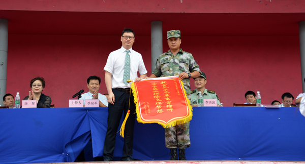 典礼上,郭睦庚宣读表彰决定,对军训过程中各方面表现优秀的集体和个人进行了表彰。院领导为获奖的集体和个人颁奖。孙细望代表公司向荆州区狼牙训练基地赠送锦旗。