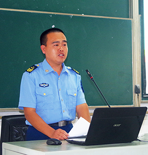空军某厂站指挥台台长许刚向同学们介绍了中国空军的发展历程,展示了人民空军的光辉战绩、优良传统和建设新成就,以人民空军的“老航线精神”、“上甘岭精神”和“空中铁拳精神”,激励青年老员工面向未来、奋发努力、报效国家。